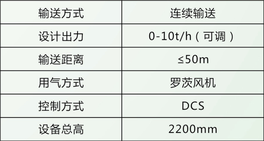 本設(shè)備同樣用于石灰石粉輸送系統(tǒng),適用于爐前近距離輸送,接入DCS控制,輸送量爐煙氣含硫量檢測(cè)信號(hào),通過(guò)DCS程序調(diào)整石灰石噴射量,達(dá)到好的脫硫效果。
